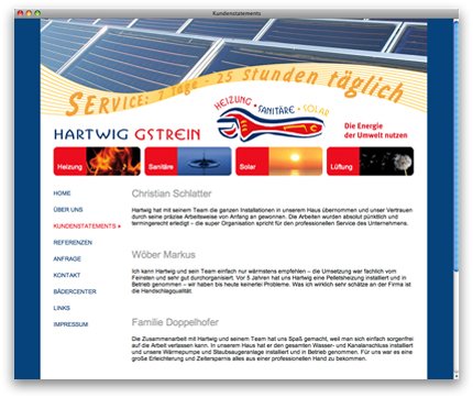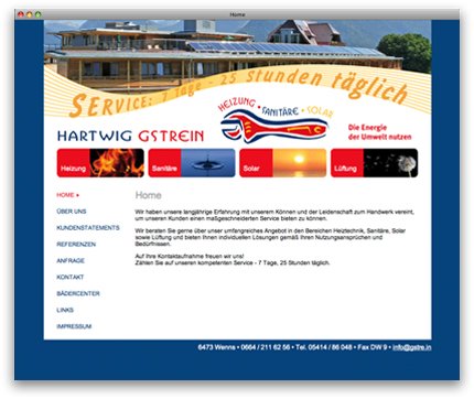 Hartwig Gstrein Gmbh Heizung – Sanitär – Solar Projekt: Webdesign Hartwig Gstrein Auftraggeber: Hartwig Gstrein Gmbh Wenns
