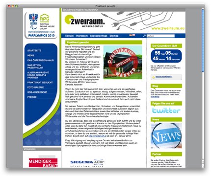 Projekt: Webdesign Austrian passive House Group, Olympia 2010 Auftraggeber: Austrian Passive House Group Konzept | Webstruktur | Screendesign
